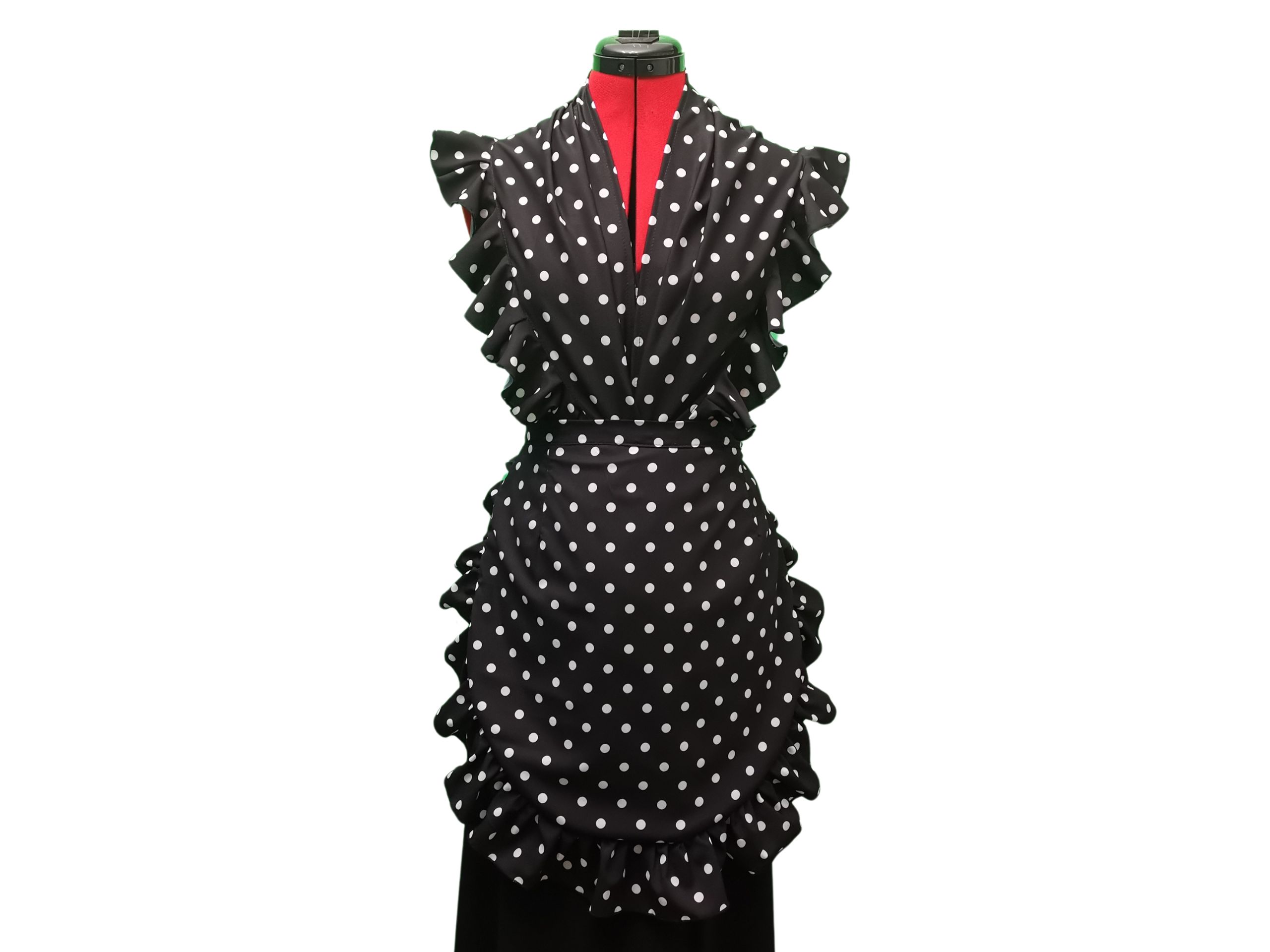 El delantal flamenco es un accesorio ideal e imprescindible en tu fondo de armario de ropa flamenca. Es muy combinable tanto con vestidos y faldas básicas dándole un toque de color y alegría y también con vestidos o faldas estampadas. Aportando a tú look Flamenco una imagen muy canastera típica Andaluza.